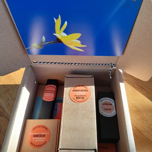 I will post this mini box set directly to your chosen person with a note inside - please let me know if you have a message and the name and address to send to (email me: saroj@stonebayskincare.co.uk)